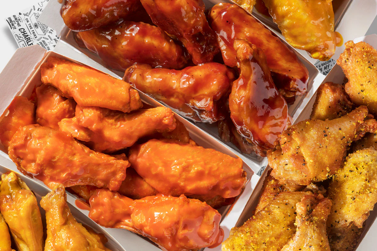 Fifty Classic Bone-In Chicken Wings hand-tossed in your choice of up to 4 sauces or rubs.