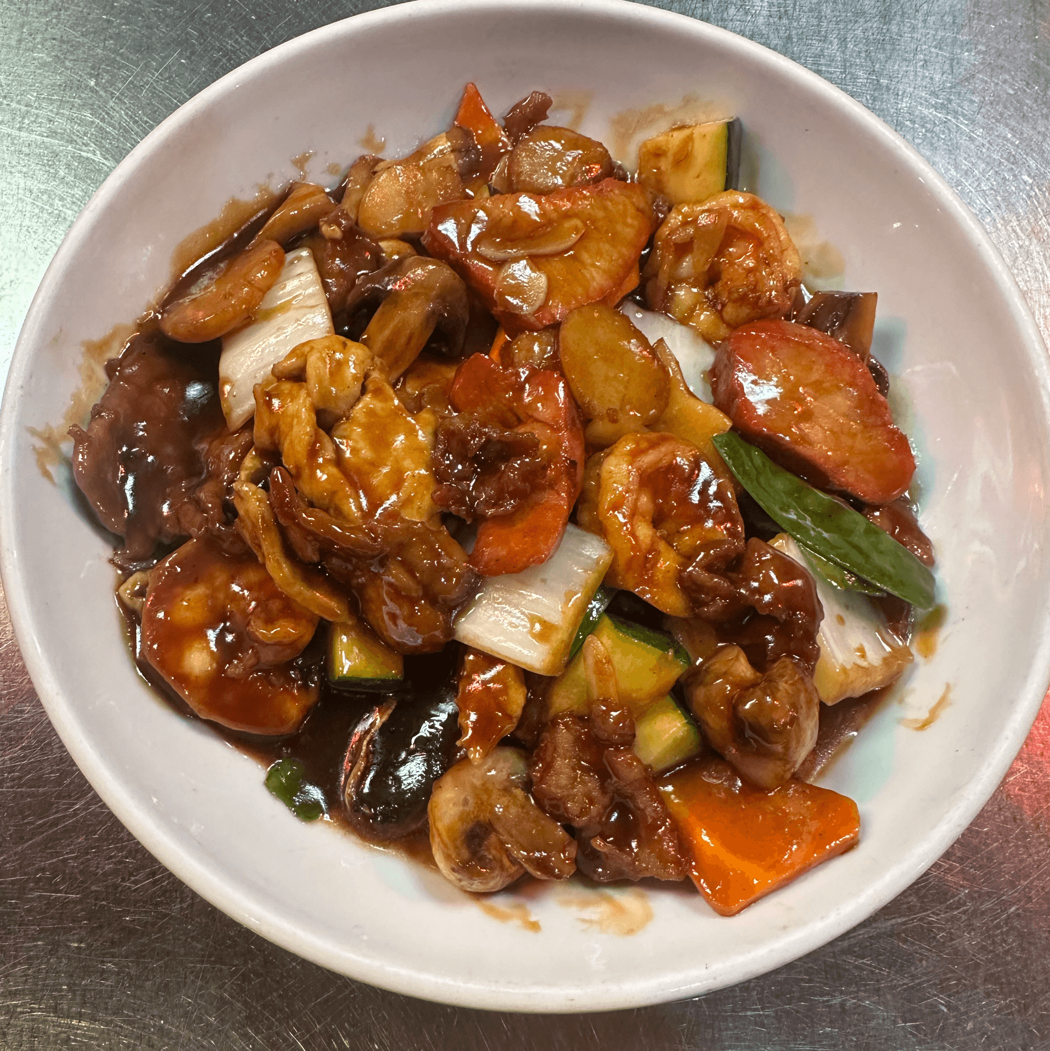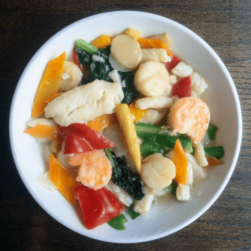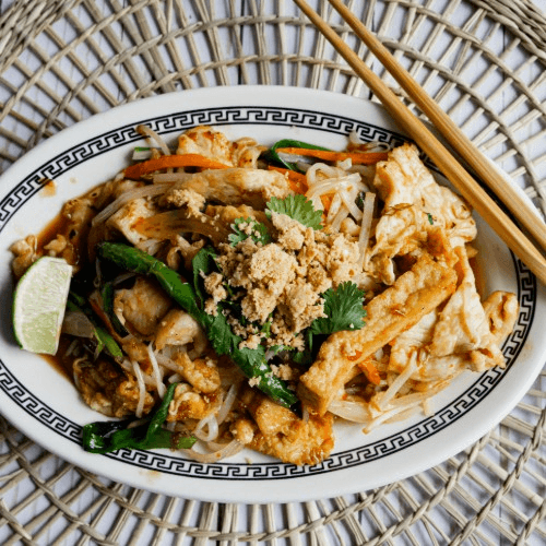 udon noodles, light butter, scrambled eggs, lite soy sauce ONLY