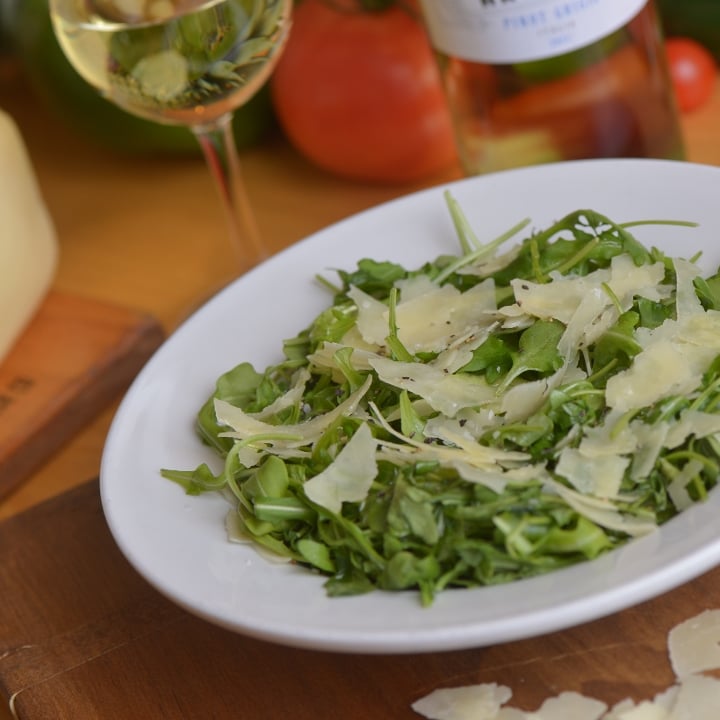 Arugula, Parmesan, lemon juice, olive oil, salt & pepper