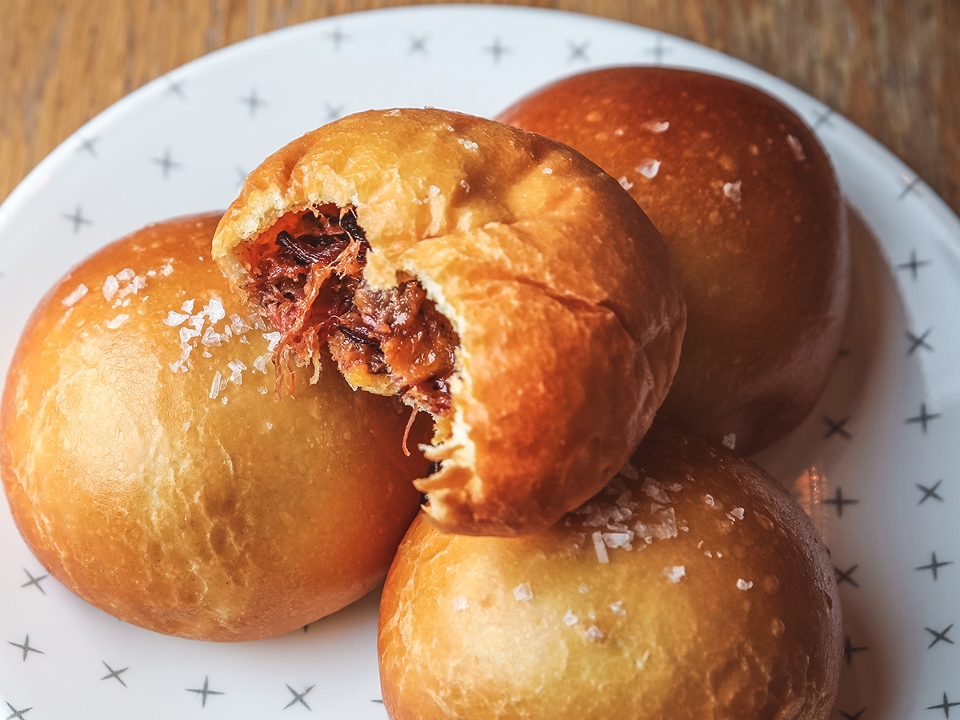 24 hr. brioche stuffed with Terry Black’s BBQ Brisket + Cheddar Cheese. Served fresh until 3pm or sold out
