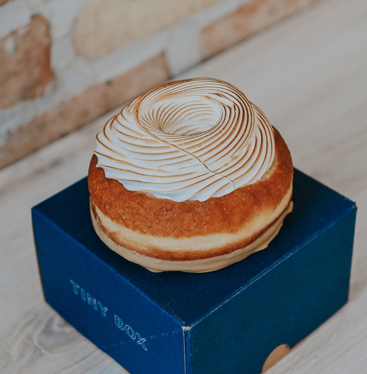 24 hr brioche soaked in a homemade horchata mixture, bottom crusted with Valrhona Caramelia chocolate + finished with torched cinnamon-meringue.