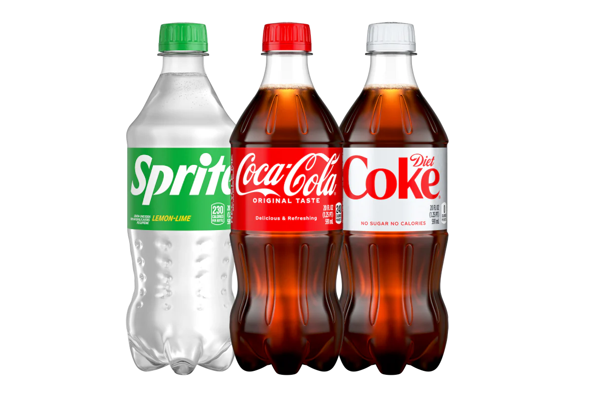 Choose from a variety of bottled drinks. Available in 20oz bottles of Coke, Sprite, Diet Coke, Coke Zero, and Powerade Mountain Berry Blast in addition to a 16.9oz bottle of Dasani Water and a 16oz can of Monster Original.