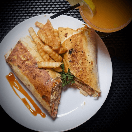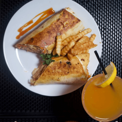 Quesadilla is a warm, grilled tortilla filled with melted cheese, diced chicken and savoury ingredients, folded to perfection for a cheesy, flavorful bite every time.