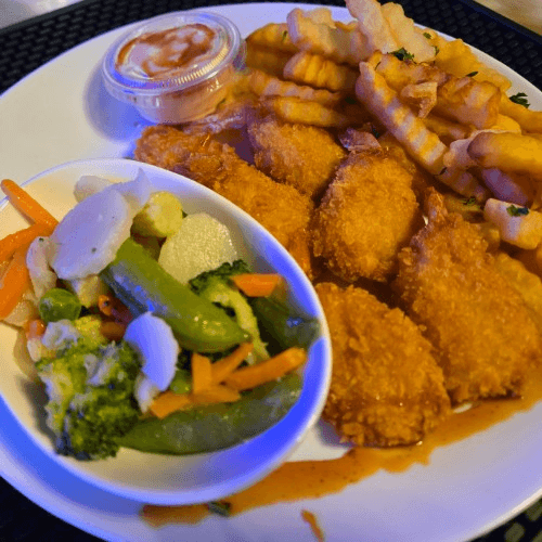 The Famous Catfish Basket features crispy, golden-fried catfish fillets served hot and tender. Paired with your choice of sides, it’s a Southern favourite that’s perfectly seasoned and irresistibly delicious.