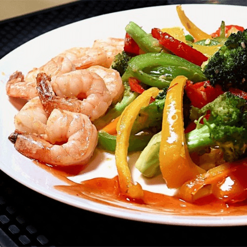Plump jumbo shrimp with veggie sautéed in bold Cajun spices for a smoky, zesty kick.